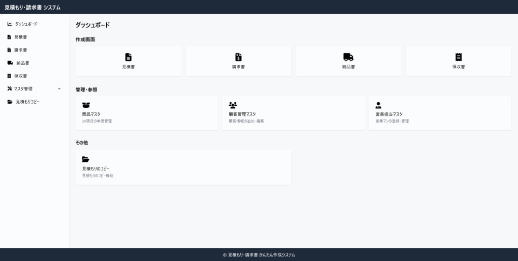 本システムは、社内での見積書・請求書作成を効率化するために設計したWebアプリケーションです。